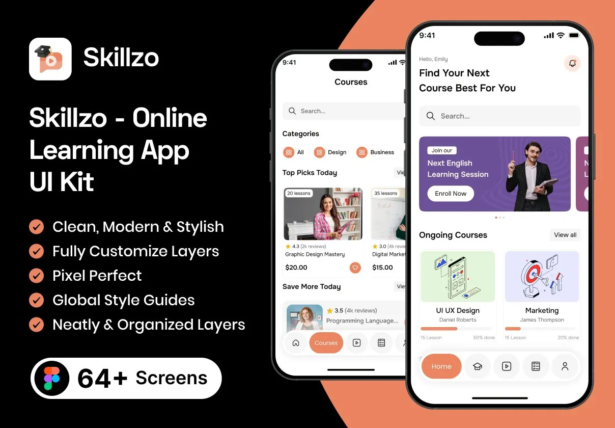 Skillzo – Online Learning App UI Kit