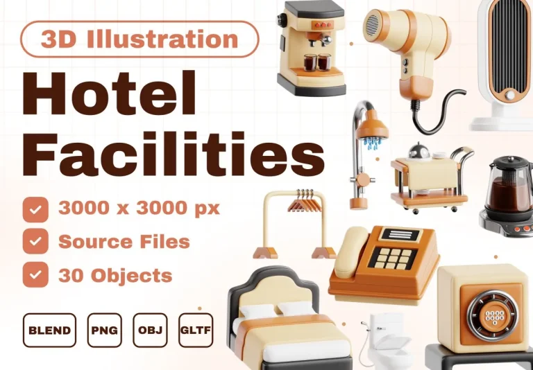 Hotel Facilities 3D Icon Set